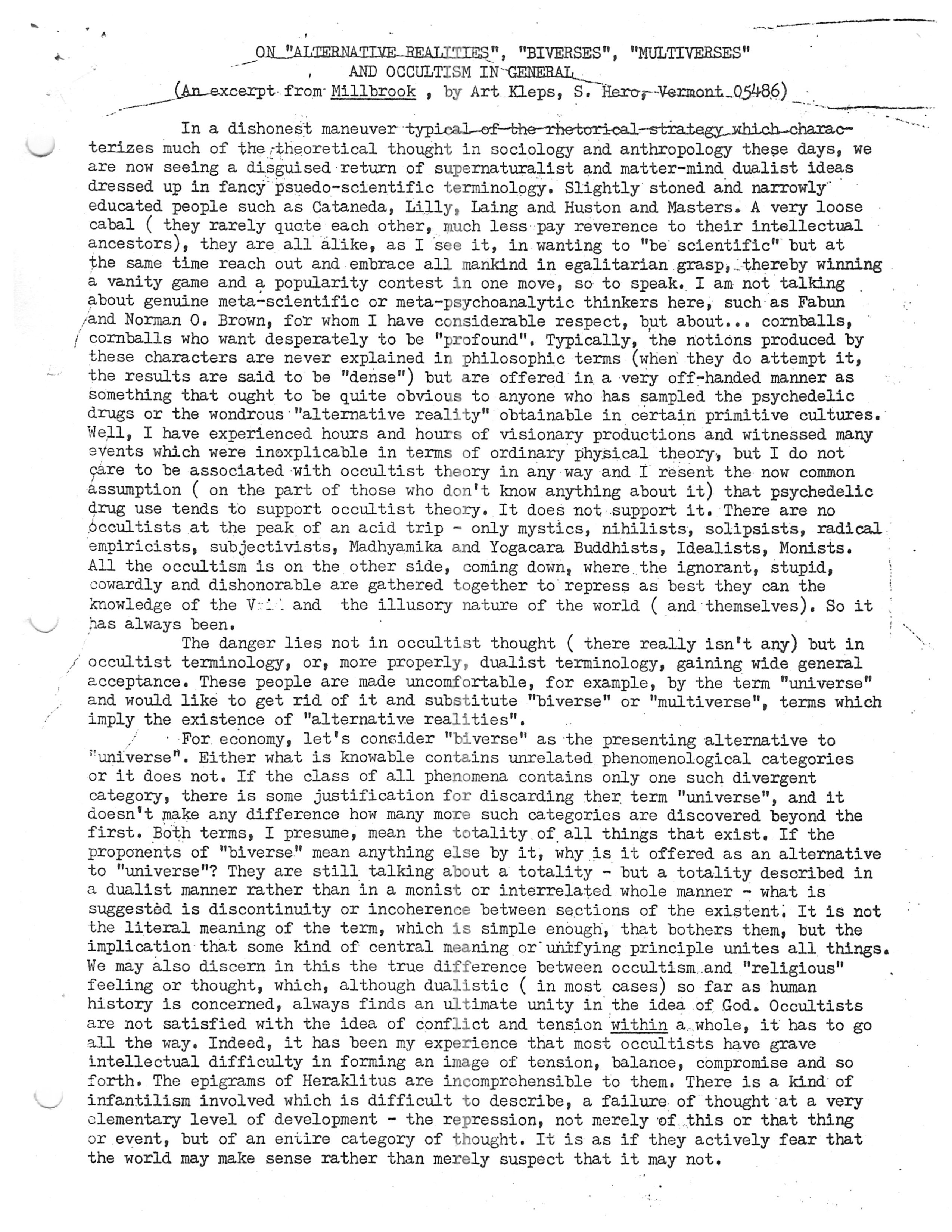 On “Alternative Realities”, “Biverses”, “Multiverses”, and Occultism in General